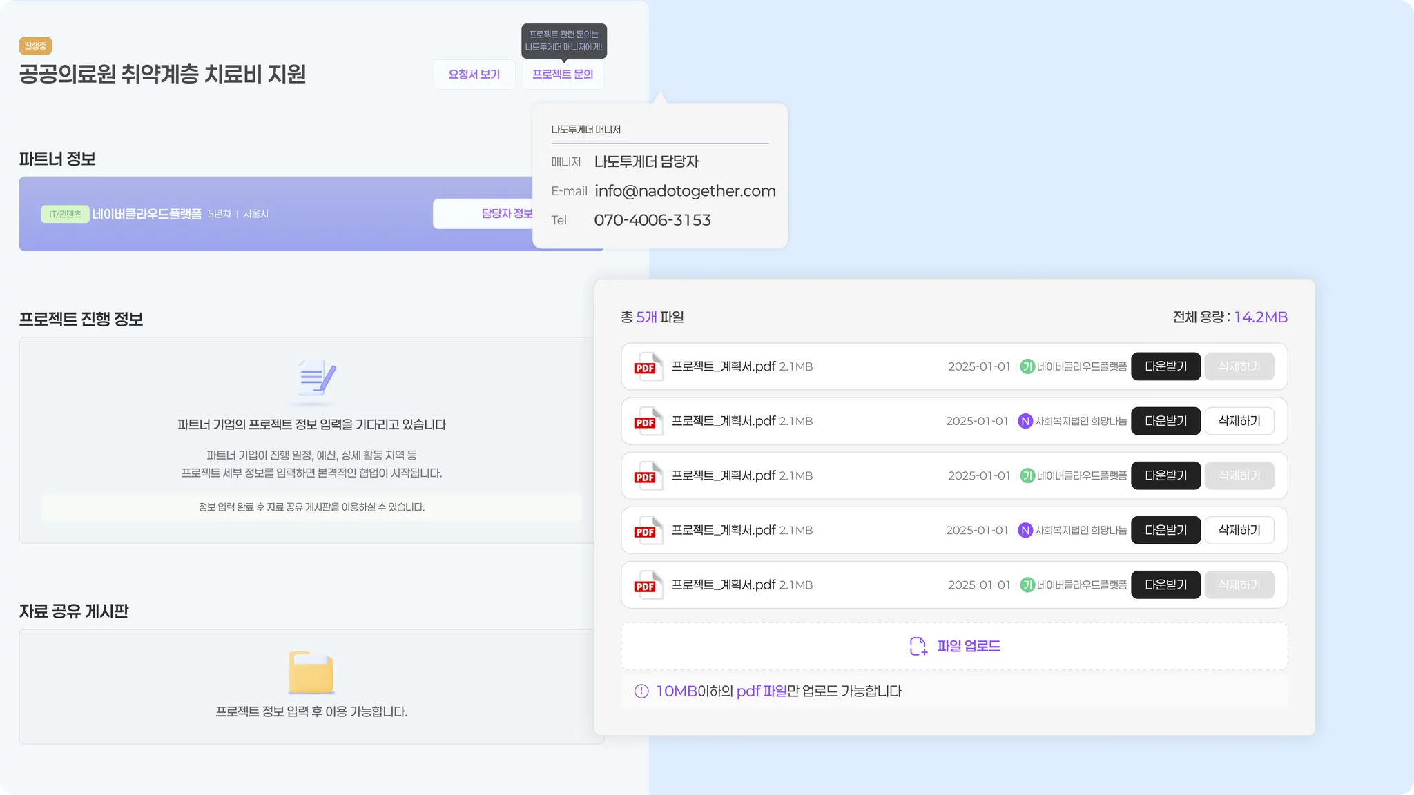 프로젝트 진행시 나도투게더 매니저의 지원을 받을 수 있습니다.