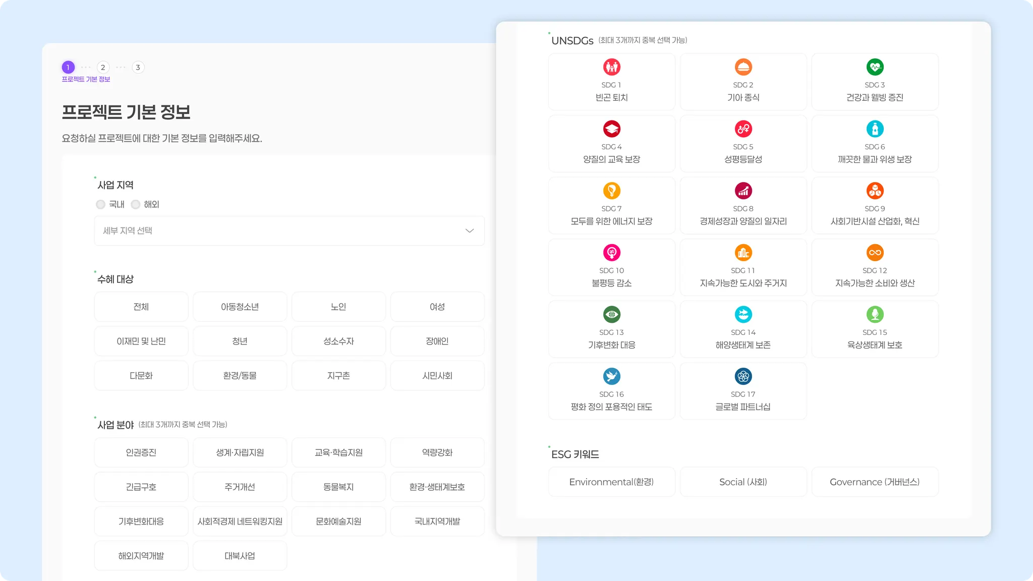 사회공헌활동과 연결된 UNSDGs를 선택합니다. (최대 3개 선택 가능)