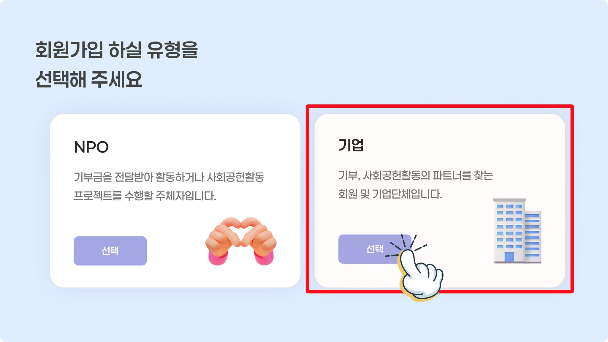 일반기업 또는 공공기관 중 해당하는 유형을 선택합니다.